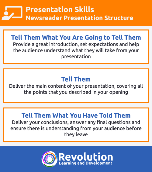 You can learn more about the newsreader style presentation structure and lots of other hints and tips bout delivering effective presentations by attending our Presentation Skills Training Course.
