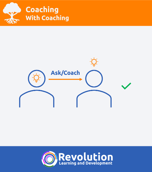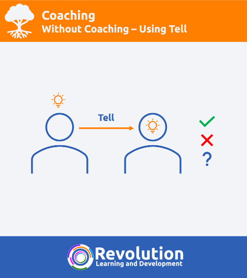 When we use coaching in the same scenario, the ideas stay with the coach and questions are used instead of telling.